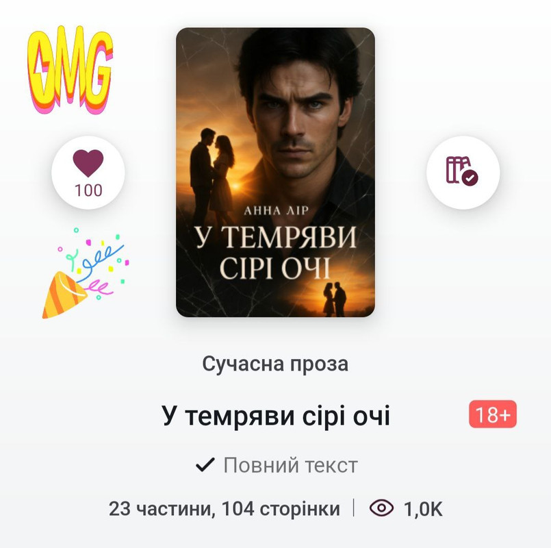 Роман «У темряви сірі очі» зібрав перші 100 сердечок, і я неймовірно радію!