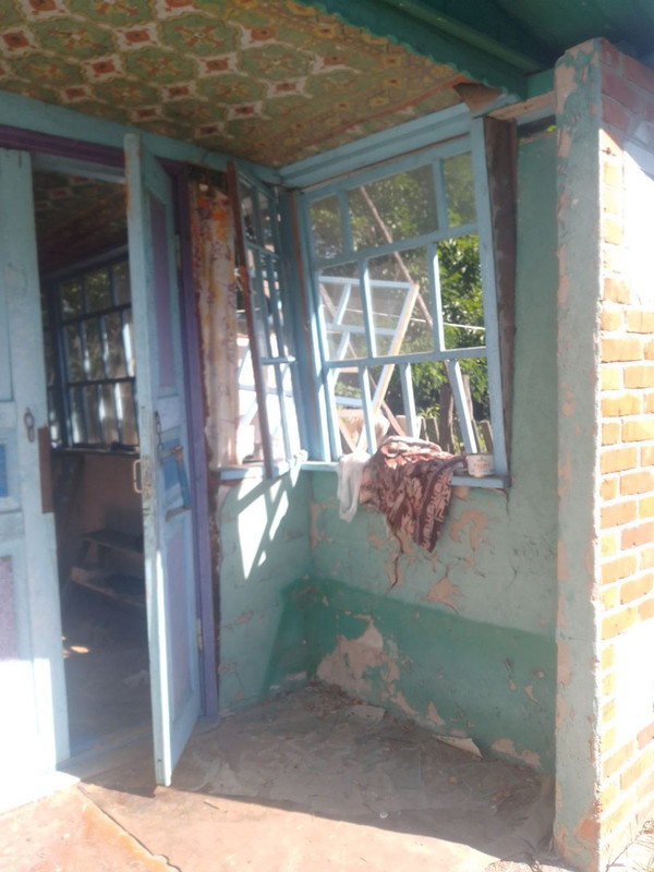А ганок фактично знищило, змістивши опорний стовп градусів так на десять (може й більше, так коли комісія фіксувала пошкодження після обстрілу я була трішки не в тому стані, аби дослухатися до цифр).