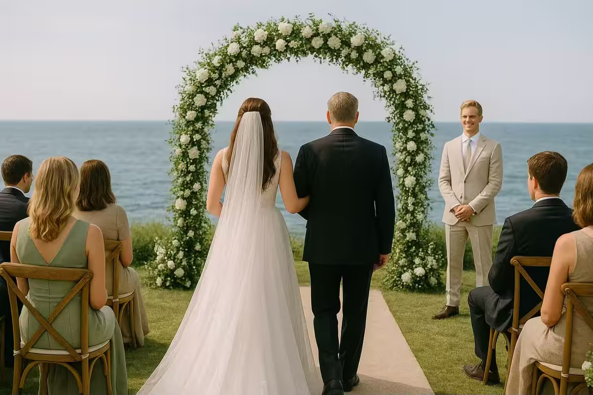 Я під руку з батьком стою на початку проходу до арки з білих квітів, яка стоїть на пагорбі з видом на океан. Біля арки мене чекає він. Лунає музика і я починаю йти назустріч Алексу. Легкий вітерець розвиває пасмо волосся біля обличчя і я тремчу, але не від холоду, я нервую. На мені неймовірно гарна біла сукня зі шлейфом, що тягнеться позаду.