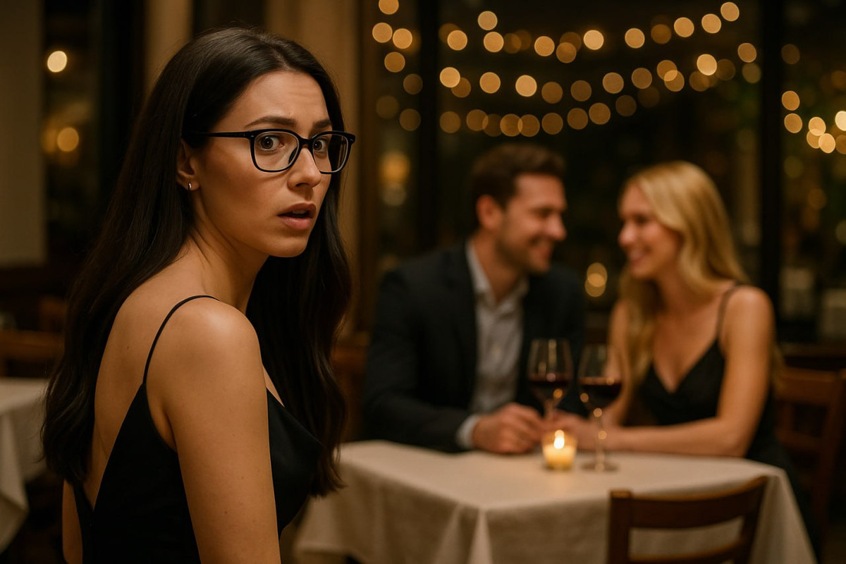 Героїня моєї книги “Без чернетки” Мілана випадково побачила в ресторані нареченого своєї сестри з іншою дівчиною. Пара фліртує і навіть цілується, так що це точно не робоча зустріч.
