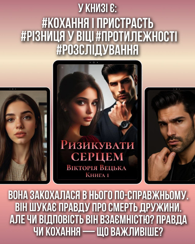 Якщо ви ще не читали першу книгу, почніть із «Ризикувати серцем» – вона безкоштовна і завершена. На вас чекає: випадкова зустріч, холодний таємничий герой, детективна інтрига, перше кохання героїні, відвертий подарунок від героя та багато іншого.