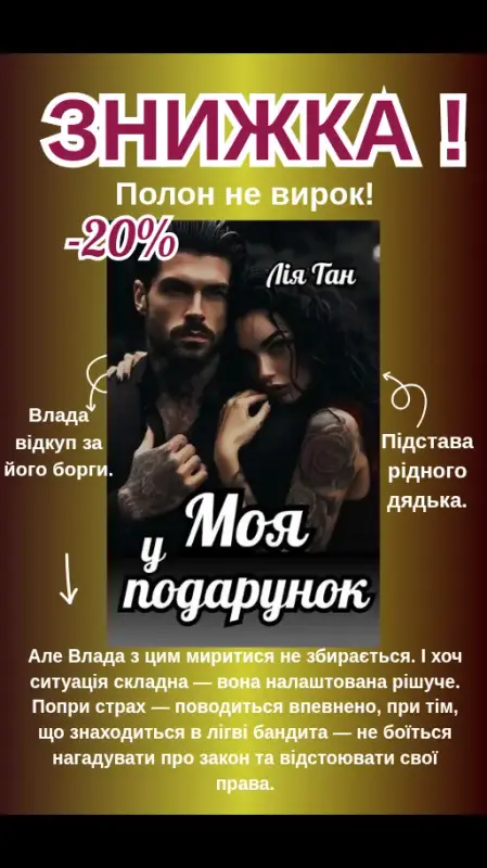 — Еміре, не буде добре, — здавлено шепоче дівчина. — Уже не добре. Я ж уже тут. І найгірше, що для тебе я лише подарунок... Ти хоч можеш уявити, що я відчуваю... Для тебе ж я ніхто, а я, між іншим людина, яка має такі ж права, як і ти...