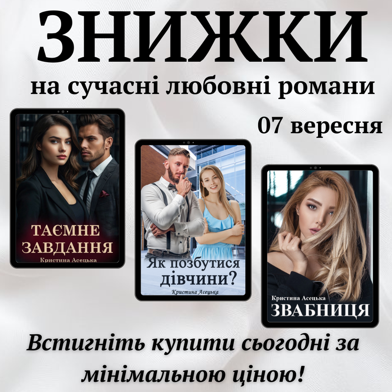 Мабуть, більшість моїх читачів знають мене як авторку фентезі, але на початку своєї творчості, я експерементувала із жанрами і писала сучасні любовні романи. Вони вийшли емоційними, неординардиними, з унікальними сюжетами. Сьогодні діє знижка на ці сучасні любовні романи. Таке стається дуже рідко, тому купуйте сьогодні ці книги за мінімальною ціною.