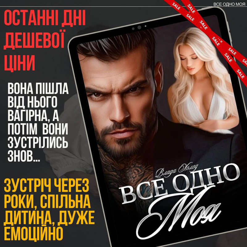 Привіт, хочу повідомити вам, що на книгу про колишніх від Влади Холод під назвою "Все одно моя", яка очолювала топ букнет у жанрі "романтична еротика" вже на днях буде піднято ціну.