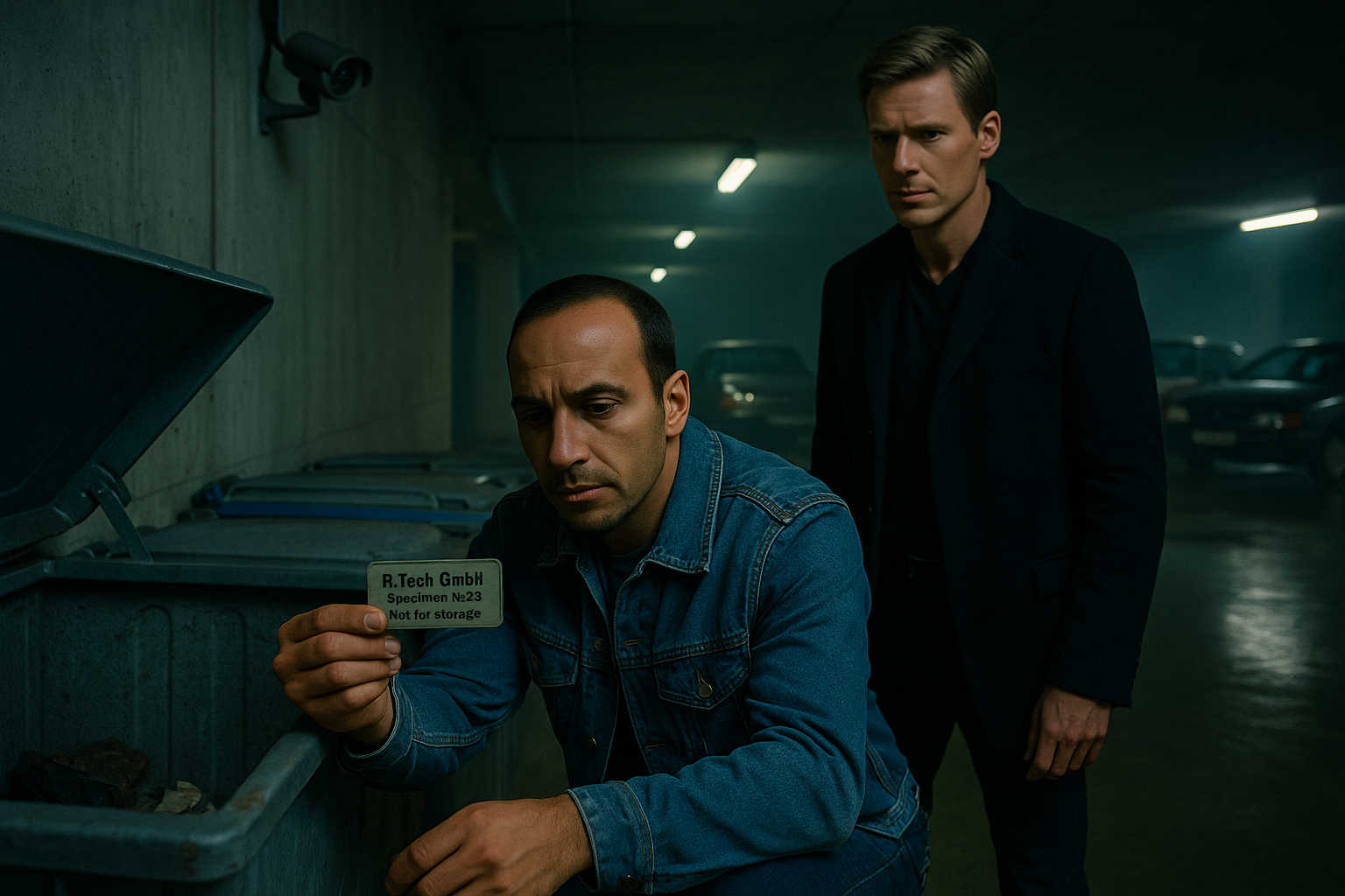 Біля стіни — металеві контейнери. Земір підходить і відкриває один. Усередині — обгортки, бруд, стара ганчірка… і щось блиснуло.