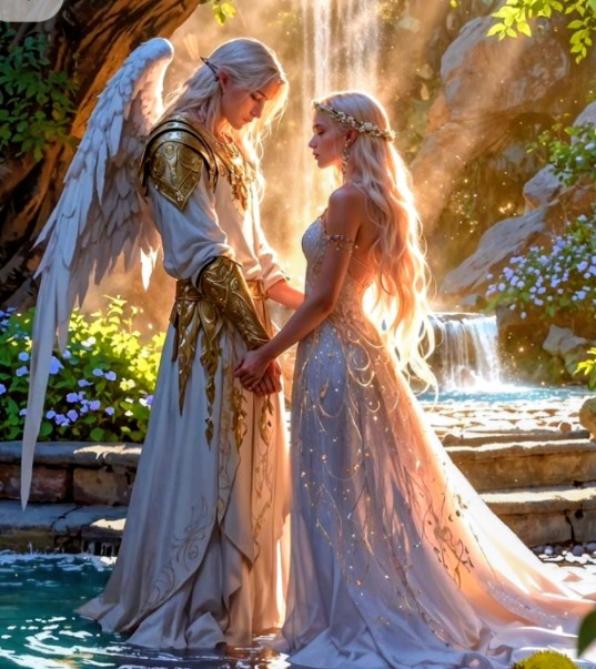Один з демонів Світла. Той — хто свідомо став рабом Творця. Він ніс в собі іскру Першотворення. Його крила не палали вогнем — вони світилися. М'яко. Тепло. Як дотик материнської руки. В його ясних очах сяяли зорі, а в сріблясте волосся були вплетені діаманти нічної роси. Він кохав її — безсловесно, безнадійно, без тіні зазіхання. Він просто був поруч.