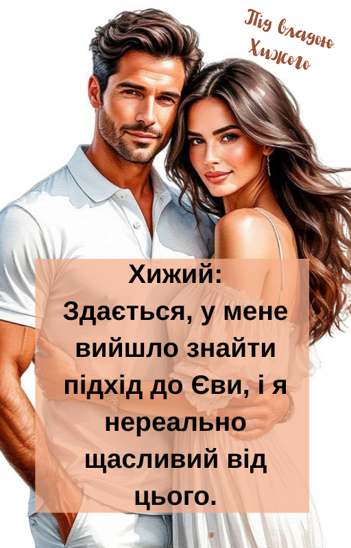 Цей тихий ніжний голос звучить надто впевнено. Від нього в мене аж у голові запаморочилося, адже це свідчить про те, що я на вірному шляху. Це дівча потрібно підкоряти ніжністю, увагою. Що ж, мені самому це подобається. Я не очікував, що у мене вийде.
