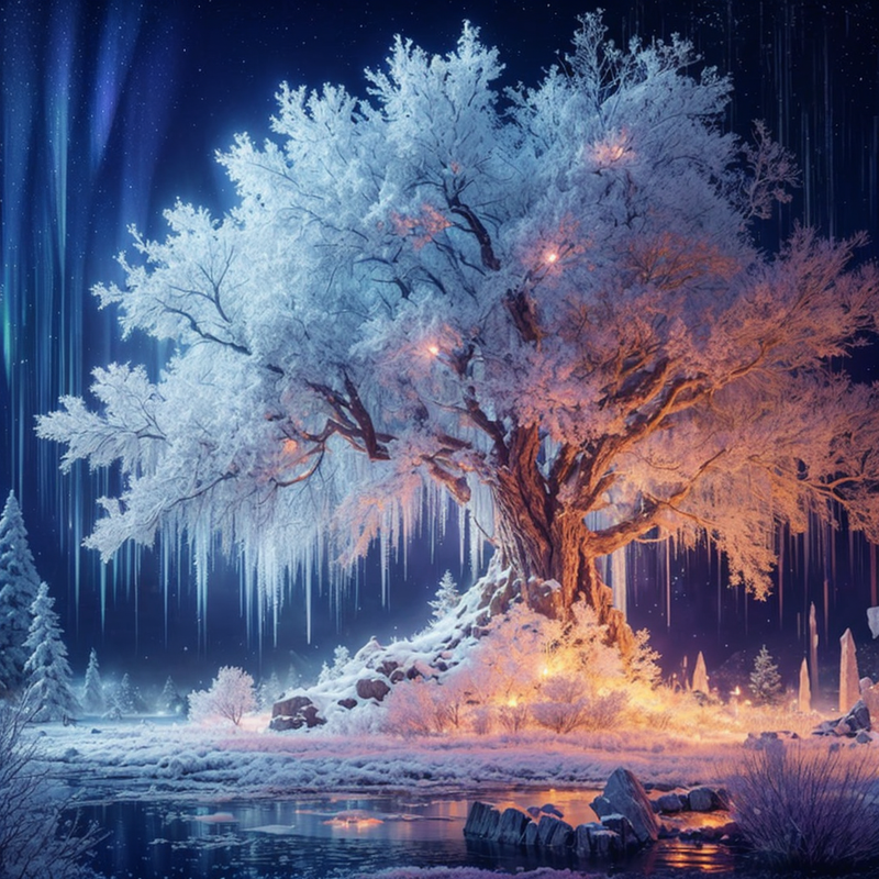 А це дуб Ліаріель, — він показав на нічне зображення засніженого дуба, на якому і під яким світилися вогники. — Він вважається першою рослиною, створеною богинею.