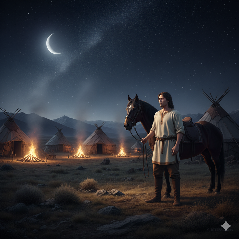 Нукаї підхопив свій пояс із зброєю, лук і вистрибнув на коня. Тим часом тінь наблизилась до одного з все ще яскраво палаючих вогнищ і він упізнав ту саму кобилицю.