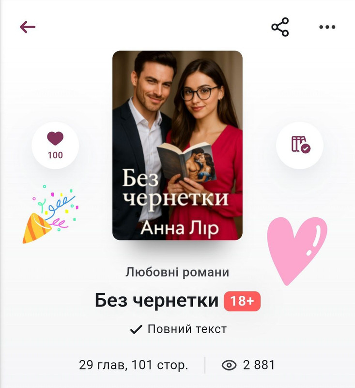 Вчора моя книга “Без чернетки” набрала омріяні 100 вподобайок. Я щиро радію, бо для мене кожна така цифра це вже досягнення.