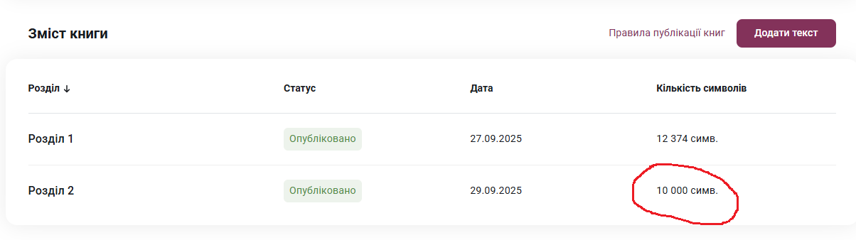 Анна Лінн, То он воно що! Дійсно, я якраз ставила собі за мету, щоб кожен розділ був приблизно 10 тисяч знаків! То це все моя підсвідомість, виявляється! Дякую за відповідь ♥️