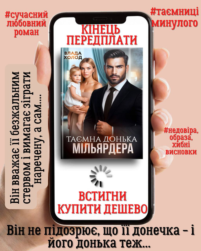 Привіт, хочу повідомити, що післязавтра вдень буде завершено книгу Влади Холод "Таємна донька мільярдера".