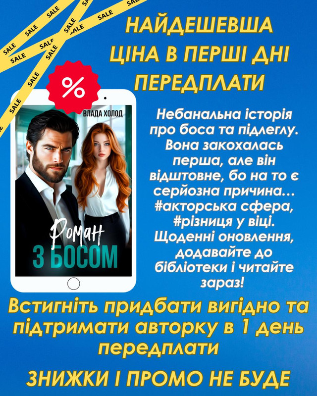 Зазирніть до новинки "Роман з босом" - і ви точно захочете дізнатися, що буде далі! Попереду найцікавіше) Підтримайте авторку в перший день передплати, це дуже важливо для неї!