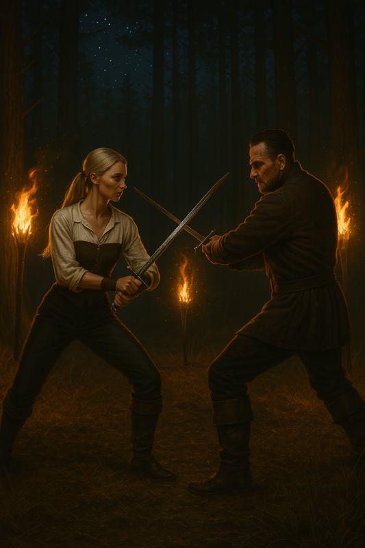 – Які сміливі погрози! У Вас заслабкі руки, принцесо, рекомендую їх натренувати, – він блискавично вибив меча з її рук і підняв його. – Зробіть десять відтискань.