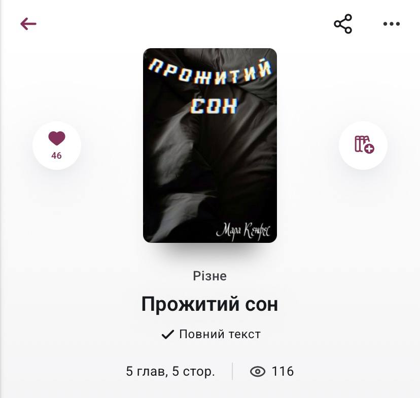 "ПРОЖИТИЙ СОН" має понад 100 переглядів та 46 вподобайок (в тому числі і мій хіх):