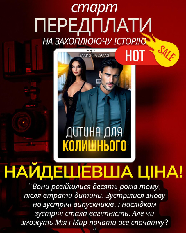 У перші дні передплати ціна на книгу "Дитина для колишнього" мінімальна, а зовсім скоро вона стане дорожчою. Промокодів і знижки у передплаті не буде, після завершення книга ще подорожчає. Тож найвигідніша покупка - прямо сьогодні. Попереду найцікавіше! Не розлучайтесь із улюбленими героями та підтримайте авторку в перший день передплати!