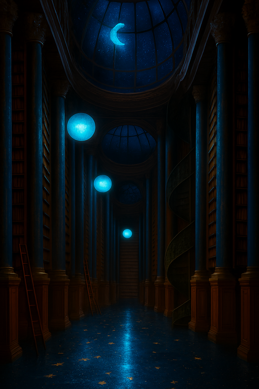 Королівська бібліотека вражала своєю красою. Високі колони із синього авантюрину виблискували у світлі магічних куль. Стелажі із червоного дерева тяглися від стелі до підвалів, зачакловані драбинки рухались між ними, видовжуючись і скорочуючись до необхідної шукачеві книги. Скляний купол даху відкривав всіяне зорями небо і жовтий серпик місяця. Гвинтові сходи, що починались під дахом закінчувались аж на нижніх ярусах, де зберігались найстаріші фоліанти, присвячені історії Зоряної Варти.
