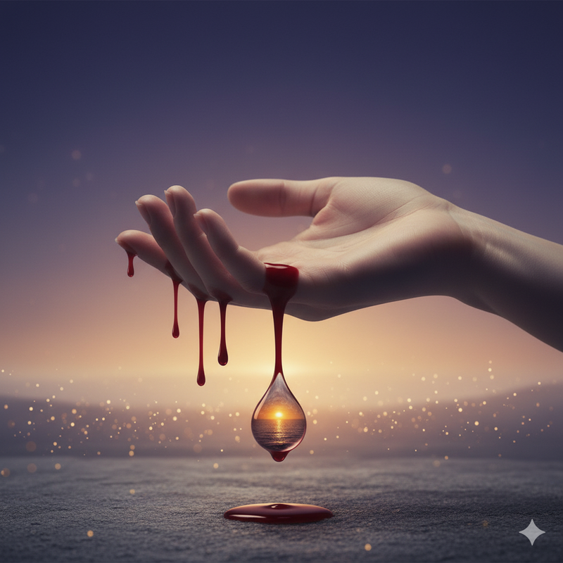 4. Цікава, але кров трохи желе нагадує, а не рідину і крапля з пейзажем трохи чужою здається.