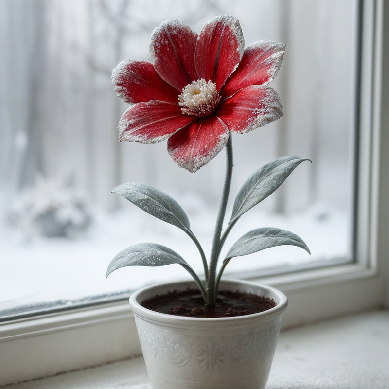 — А це що за квітка? — спитала я, побачивши в санях горщик з червоною квіточкою. Її яскраві пелюстки мали біле обрамлення по краю, вони ніби були припорошені снігом. Листя ж було зеленувато-сріблястого кольору, гладеньке, з ледь помітними прожилками. А який у квітки був аромат! В ньому змішалася суміш прянощів, хвої та морозної свіжості, ніби п’єш глінтвейн на лісовій галявині. — Така гарнюня! І пахне чудово.