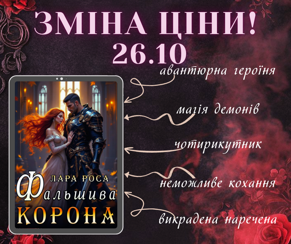 Хочу нагадати, що за два дні - 26.10 буде значно збільшено ціну на ФАЛЬШИВУ КОРОНУ, а знижка ще не скоро, тож, хто хоче зекономити - купуйте книгу зараз, поки вона коштує дешевше. Трохи подражню смачним уривком з неї: