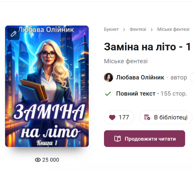 моя книга "Заміна на літо - 1" досягла 25 тисяч прочитань і я встигла це відстежити