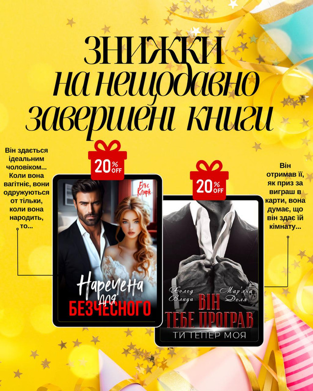 А ще сьогодні діє знижка на роман Влади Холод та Мар'яни Долі "Він тебе програв. Ти тепер моя"!