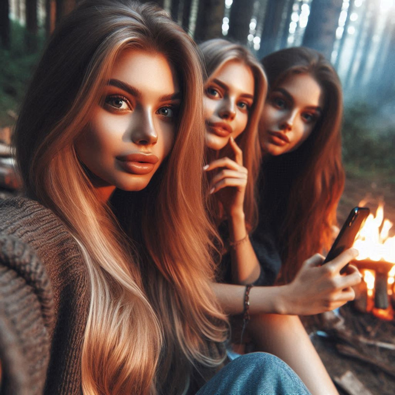 - з друзями біля вогнища в лісі;