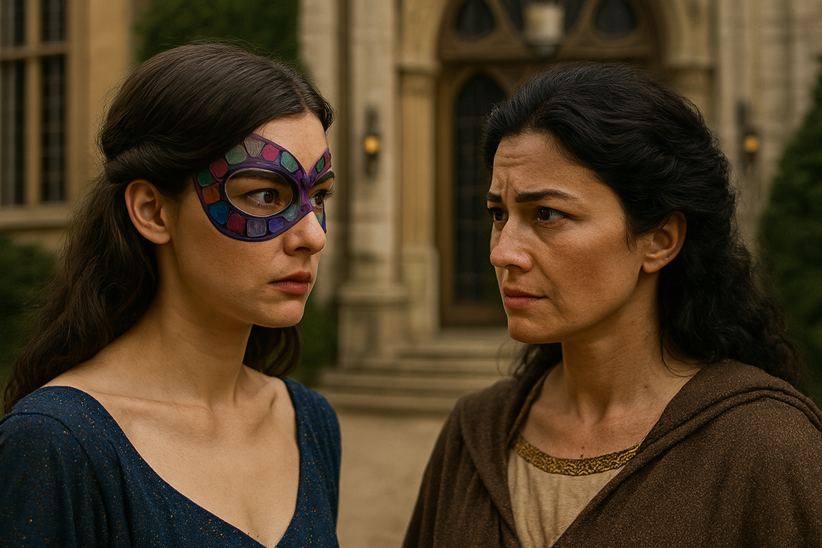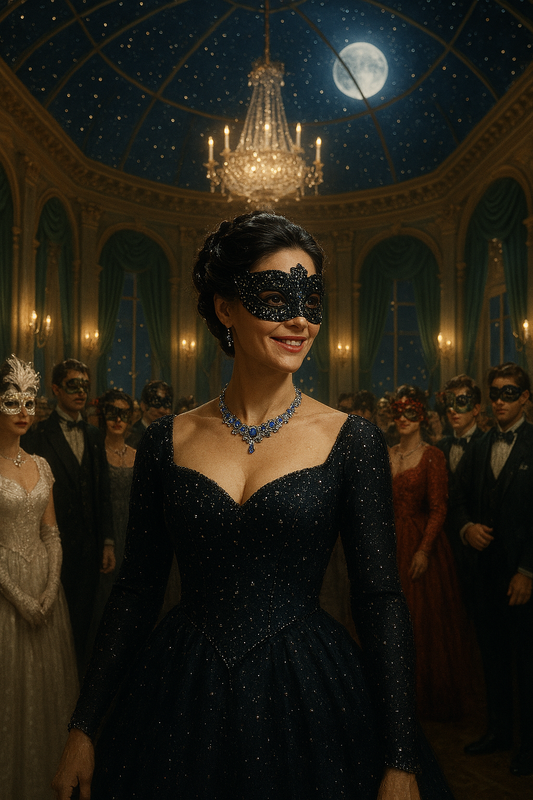 Королева мала маску, що охоплювала майже все її обличчя, лишаючи відкритими пухкі губи, що злегка мерехтіли у сяйві свічок. Вона вітала гостей, щиро посміхаючись. Сафріна замилувалась нею, розуміючи, що прагне стати такою ж розкішною і шанованою, як вона.