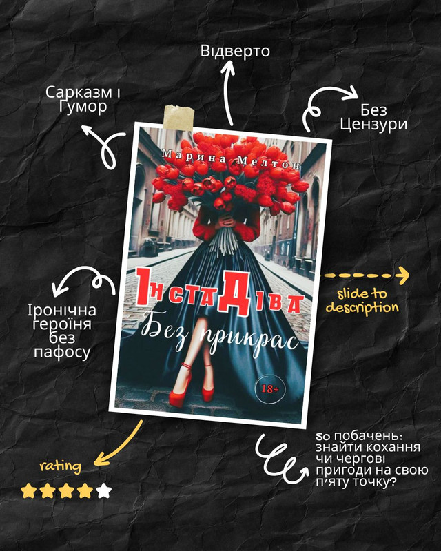 Вітаю! До публікації нової книги залишилось 8 днів. Анотація: Ніхто не впізнає в мені колишню наївну дівчину Олесю Коломієць — ту, якої більше не існує. Тепер я Алексса Ловентай, і світ лежить біля моїх ніг. Але