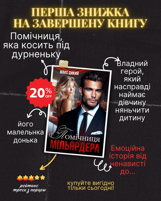 ЧИТАЙТЕ РОМАН "ПОМІЧНИЦЯ МІЛЬЯРДЕРА" ЗІ ЗНИЖКОЮ ТУТ!