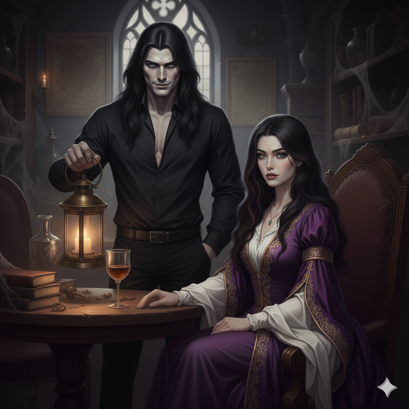 Кімната була невеличка: стіл, крісла, кришталеві пляшки, дрібнички, старі карти. У кутках — пил і забутий мотлох, який, можливо, мав неабияку цінність.