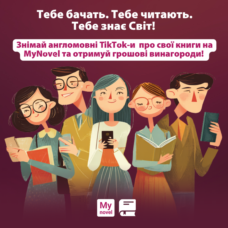 - Створити англомовний акаунт TikTok, присвячений вашим книгам та загалом книгам з MyNovel.