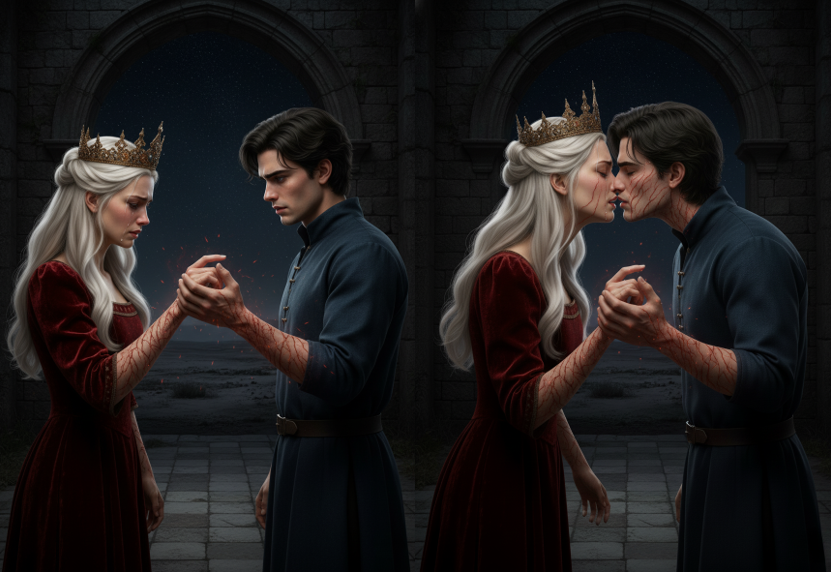 Мить стала вічністю, наповненою бажанням та обіцянкою. Світ навколо них неначе зник, лишилися тільки їхні обличчя і невтамовна потреба бути разом. А тоді вони наблизились одне до одного і нарешті поцілувалися. Той біль був нестерпним, мов розпечений метал, що пропалював до кісток. Всюди, де вони торкнулися одне одного, шкіру вкривали глибокі рани і синці. Якийсь час вони ігнорували той біль, прагнучи відчути те, до чого закликало серце, а не тіло. Та потім біль став занадто сильним...