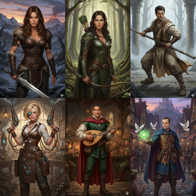 А сьогодні хочу представити своїх героїв. Я не придумував імена просто згенерував їхні образи за допомогою Ші. Писав, що більше не буду ним користуватися як автор, але їх зробив до того. Отже по картинках зліва на право: