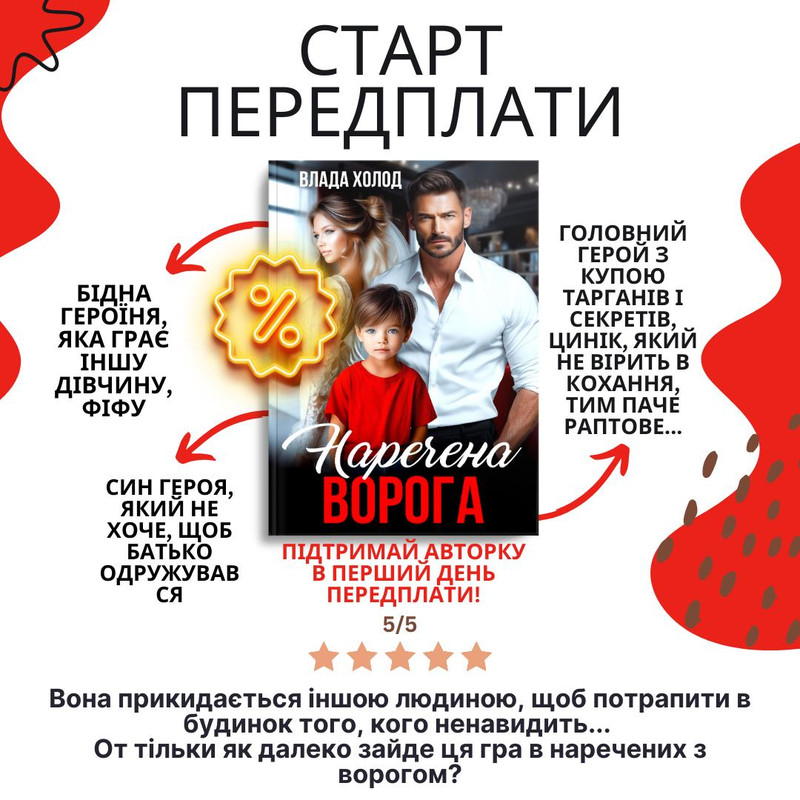 Купуйте "Наречену для ворога" за мінімальною ціною та підтримайте авторку в перший день передплати !