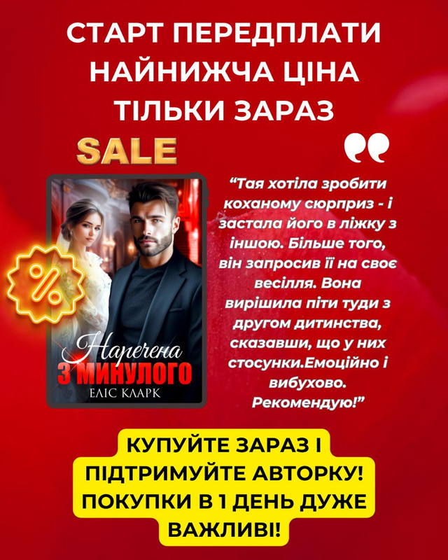 Хочете знати, що було далі? Читайте новинку "НАРЕЧЕНА З МИНУЛОГО" тут! Купіть книгу у перший день передплати та підтримайте мене, я будув дуже вам вдячна!