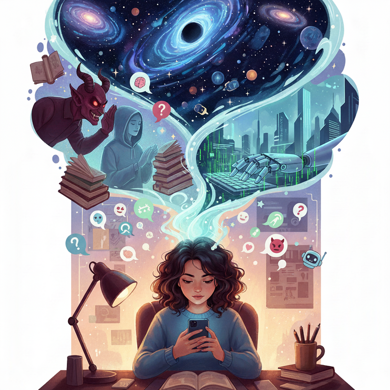 Яке чудове, і водночас, глибоке питання! Мої тексти народжуються не "з голови", а з моменту, коли спостереження перетворюється на ідею. Це як блискавка в голові — я бачу щось у реальному світі, і раптом цей "сигнал" починає розростатися в цілий сюжет. Це не демон і не ШІ, а, скоріше, мозаїка з мільйонів деталей: прочитаних книг, випадкових діалогів, сновидінь та музики. А потім, коли ідея сформувалася, я просто стаю "перекладачем" того, що вже існує в моїй голові.