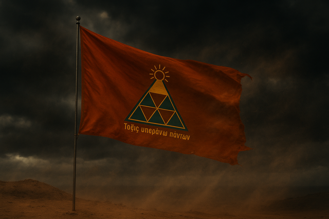 Щоб глибше занурити вас у цей світ, я розробила герб, прапор і девіз Спільноти — «Τάξις υπεράνω πάντων» (грец. Порядок понад усе). Ці візуальні символи втілюють її ідеологію, контроль і парадоксальну віру в порядок через ізоляцію.