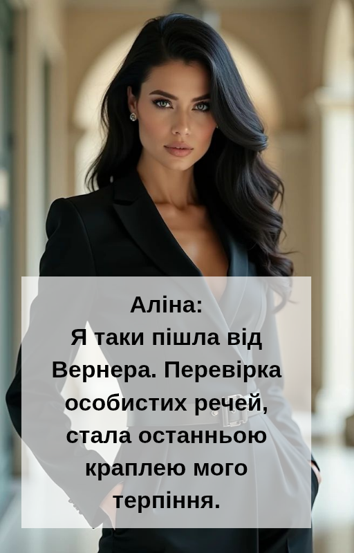 Покидаю кабінет, гримнувши дверима. Прямую до ліфта і відчуваю, як на душі стало легше. Тепер розумію, що залишатися працювати у компанії Вернера було помилкою. Але нічого, тепер я пішла з чистим сумлінням. Мені не цікаво, що шукали люди вернера? Чи знайшли те, що шукали, як і не цікаво навіщо.
