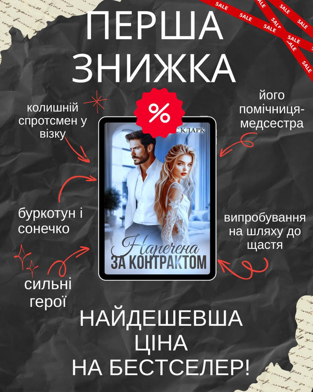 Запрошую до щойно завершеної історії з топу Букнет "Наречена за контрактом", яка точно не залишить вас байдужими! Тут є протистояння характерів та кохання, яке зцілює... Тільки сьогодні до півночі ви можете придбати цю книгу зі знижкою!
