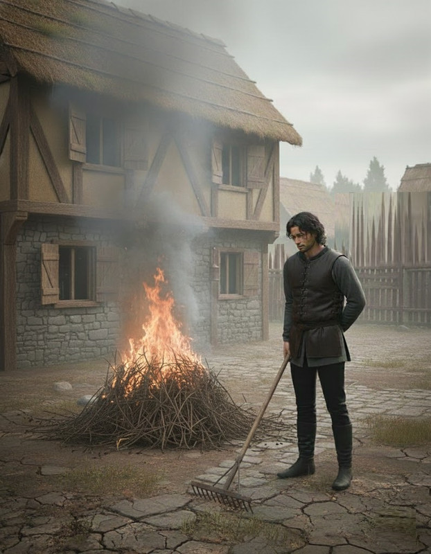 — Каріоне! Що відбувається? — кричить наставник, вриваючись на територію резиденції, прикривши обличчя хусткою, щоб не дихати димом. Але все розуміє, ледь побачивши майже догорілий бур’ян.