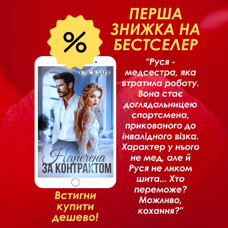 Запрошую до романтичної історії від Еліс Кларк "Наречена за контрактом"! Це бестселер Букнету, який уже купили понад 500 читачів! Тільки сьогодні до півночі на цю книгу діятиме знижка!