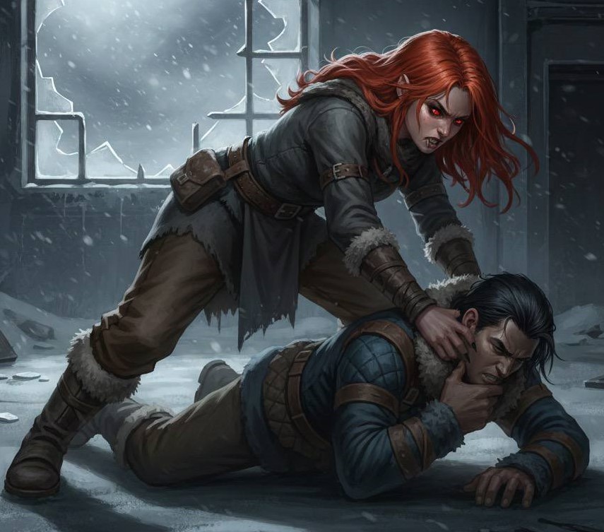 І він намалював: гостровуху ельфійку та Мора в одязі спецпризначенця. Меч з попи дістав, переставив у спину, а філейну частину Шери тепер надійно зафіксував чаклун.