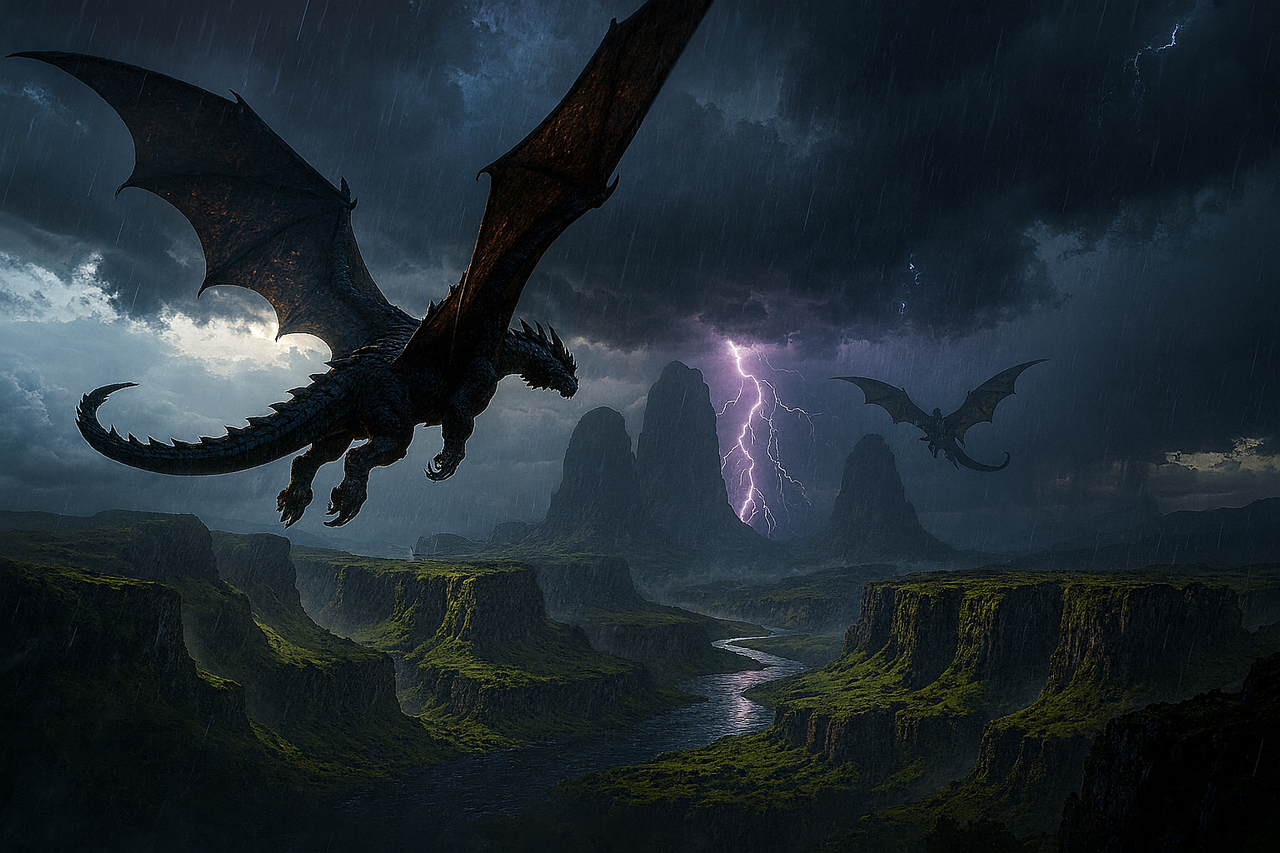Сестри вже з усіх сил боролися з вітром та холодним дощем, що промочив їх до нитки, коли вони дійшли до спуску, що відкривав їхнім поглядам чудернацький краєвид — сіра стрімка річка, що відзеркалювала важкі хмари, бігла вниз мошистою долиною, яку увінчували три скелі настільки велетенські, що навіть з цієї далекої відстані здавалось, що вони дряпають небо своїми верхівками. Хмари роздирали червоні блискавки. Айлін тремтіла чи то від холоду, чи то від страху.