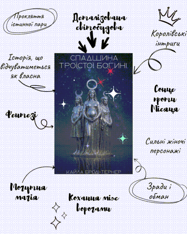 "Спадщина Троїстої Богині", це книга, що занурить вас у світ магії, таємниць, інтриг і темряви, що завжди відступає перед світлом!