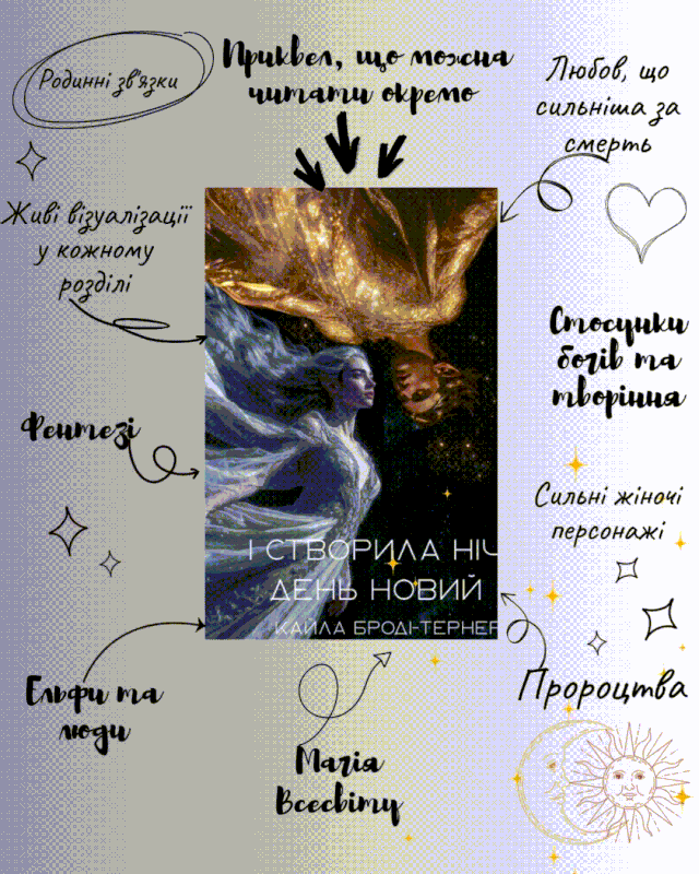 У "І створила Ніч День новий..." на вас чекають живі візуалізації у кожному розділі, нетипові персонажі та історія, що розгортатиметься прямо на ваших очах! Також приквел можна читати окремо від основної історії.