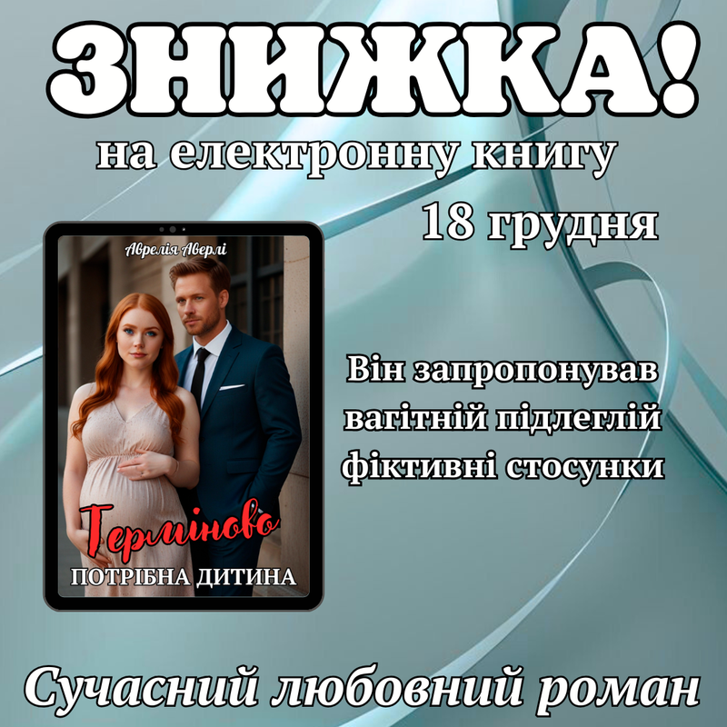 Всім привіт! Сьогодні діє знижка на сучасний любовний роман “Терміново потрібна дитина”. Історія кохання Лесі й Дем’яна розпочалася не зовсім стандартно. Задля власних інтересів, бос запропонував своїй вагітній підлеглій сказати всім, що він батько її дитини. Дівчина погоджується й навіть не підозрює в яку аферу її затягнули.