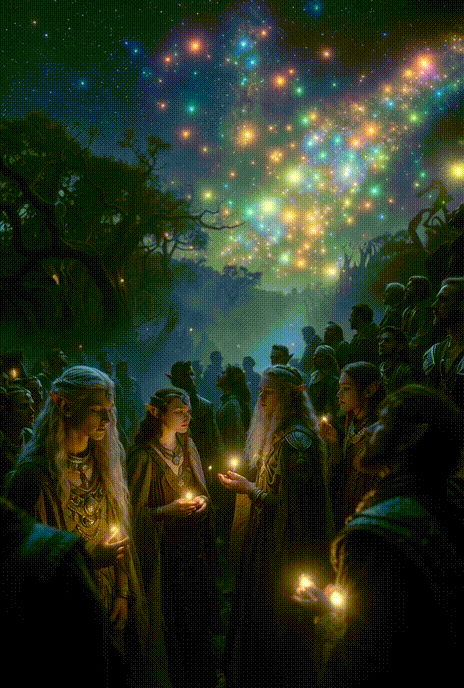 Вітаю, друзі! Новий розділ уже на сайті!✨ Ельфи не вірили у тлін і смерть душі. Вони звали це Церемонією Вознесіння. Тіло розвіювали спеціальними чарами і воно сяйливими вогнями сягало небес. Линуло до самої Богині, щоб