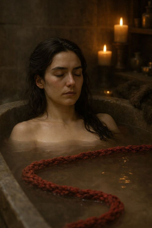 Вона роздяглася догола, сіла на підлогу й почала скручувати червоні вовняні нитки, вплітаючи в них волосся з обраного тіла. Потім влила заговорену воду з краплею крові у ванну, всипала солі й, прихопивши з собою ту скручену з ниток пуповину, залізла у імпровізовану матку. Запаливши воскову шестигодинну свічку, Одхан узялася до останніх приготувань.