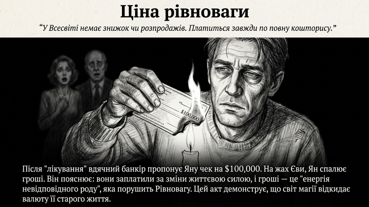 ВАСИЛЬ: (знизує плечима) Це закон Рівноваги, Крите. Ян не міг взяти гроші за магію, це створило б надлишок потенціалу.